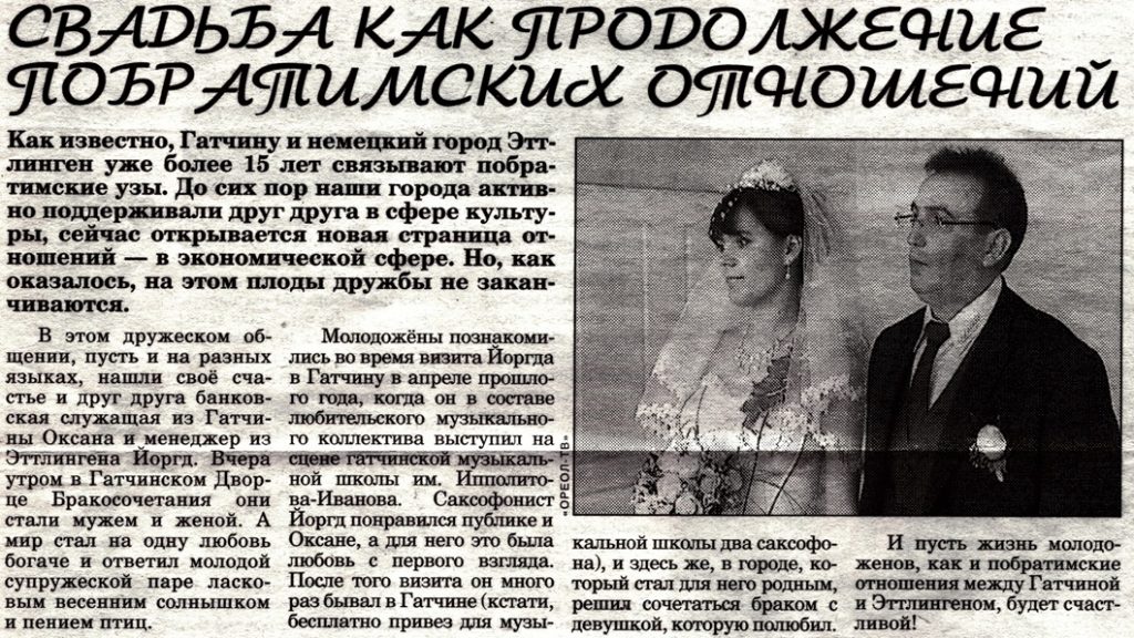 Hochzeit im Schloss Gatschina / Presseartikel / Mai 1, 2008 Hochzeit Jörg Müller und Oksana Liebe auf den ersten Blick Post Views: 29